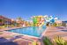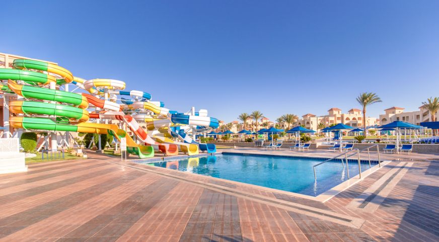 Собствен пясъчен плаж на около 600 м от хотела (ползва плажа на хотел Albatros Beach Resort), безплатен шатъл до плажа. 7 открити басейна и (1 отопляем през зимния сезон), гостите на хотела могат да използват и басейните в хотелите (Albatros Aqua Park - 9 басейна, Aqua Vista – 6 басейна), дискотека, 9 водни пързалки за възрастни - Albatros Aqua Park. Чадъри, шезлонги и матраци на плажа и при басейна с ползват безплатно.