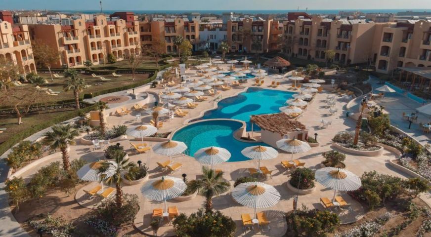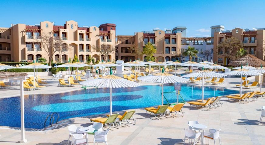 Намира се на 30 км. от летище Хургада, на 40 км. от центъра на Хургада, в района на Макади бей, на 800 м. от брега на морето.