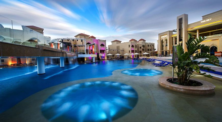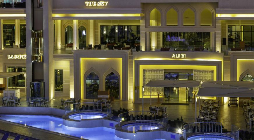 Основен ресторант, снек ресторант, снек бар на плажа ( Albatros beach Resort), 3 а-ла карт ресоранта (италиански, азиатски,ориенталски), 7 бара, Red Sky Bar (в Beach Albatros Resort), наргиле бар, 7 открити басейна и (1 отопляем през зимния сезон), гостите на хотела могат да използват и басейните в хотелите (Albatros Aqua Park - 9 басейна, Aqua Vista – 6 басейна), дискотека, 9 водни пързалки за възрастни - Albatros Aqua Park ), 2 тенис кортa, СПА център, магазини, конферентни зали, Wi-Fi