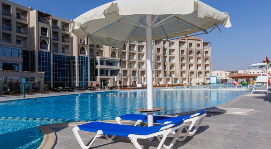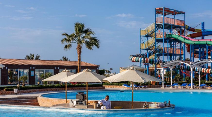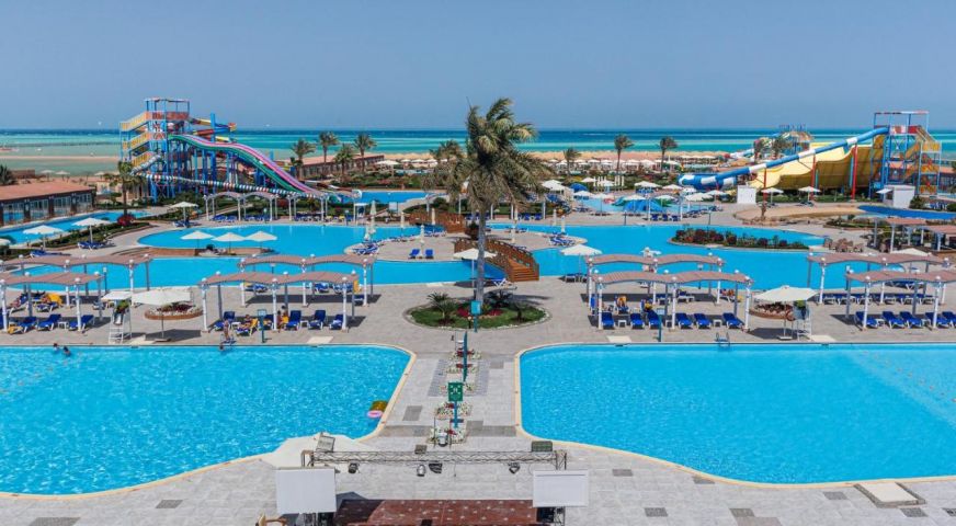 Намира се на 18 км. от летище Хургада, на 15 км. от центъра на Хургада, на брега на морето. Последно реновиран през 2025 год.