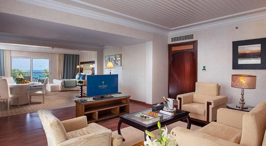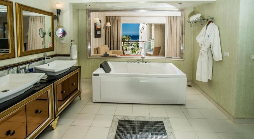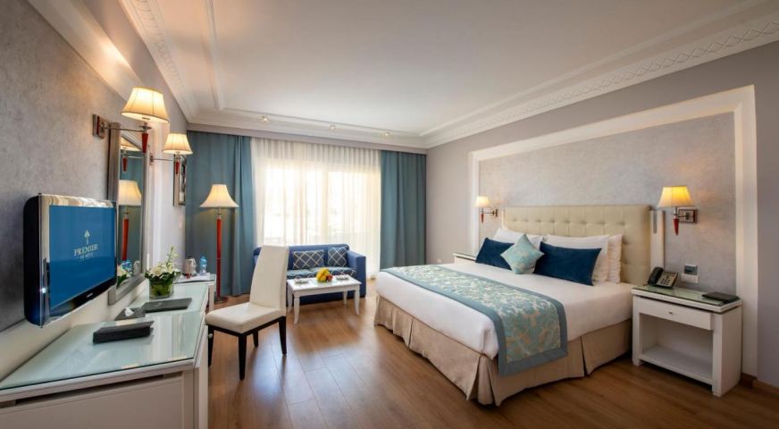 Хотелът разполага с общо 419 стаи, разположени в един основен, пететажен комплекс, от които 37 Double Room With Garden View (49m2), 22 Double Room with Pool View (49m2),132 Double Room with Limited Sea View (49m2), 8 Double Room with Sea View(49 m2), 12 Deluxe Garden View(49 m2),40 Larger Room Jacuzzi Deluxe Double Room with Limited Sea View, Pool View (56 m2) , 4 Jacuzzi Suite (70 m2), 22 Premium Jacuzzi Suite (60m2). Всички стаи са оборудвани с климатик, телевизор, телефон, баня с душ, сешоар, минибар (зарежда се безплатно с вода и безалкохолни напитки), сейф (безплатно), балкон. Почистване на стаите и смяна на кърпи - всеки ден, смяна на спално бельо - 2 пъти седмично.