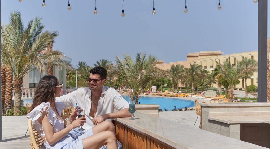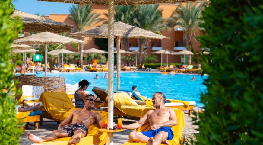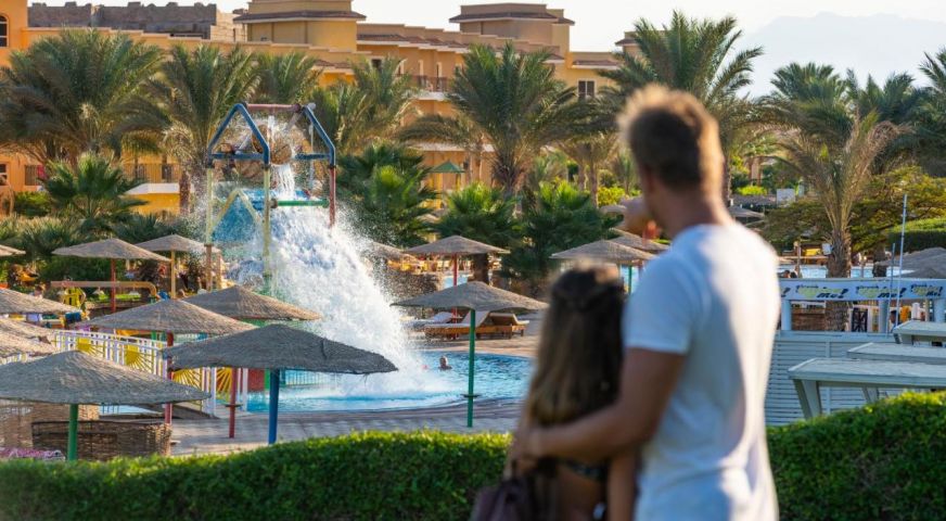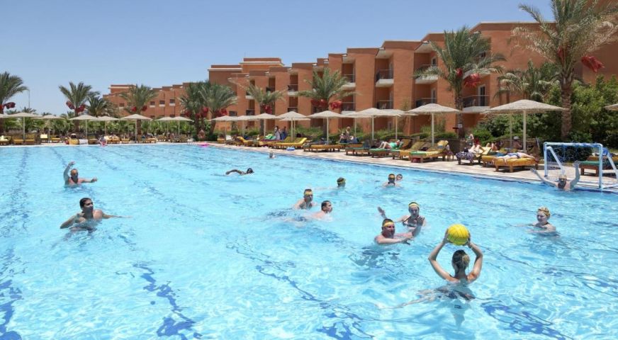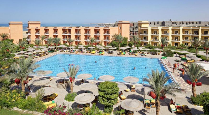 Намира се на 25 км. от летище Хургада, на 13 км. от центъра на Хургада,в района на Ел Гуна, на брега на морето. Посторен през 2009 г., последно реновиран през 2015 г.