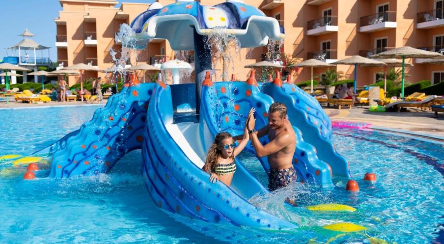 За децата: детски басейн, водни пързалки, мини клуб (5-12г.), детска площадка.