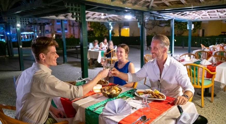 2 ресторанта (един, от които основен), 2 италиански а-ла-карт ресторанта, 3 бара, 3 басейна (2 отопляеми през зимата), водни пързалки, СПА център, Wi - Fi (безплатно в общите части на хотела).