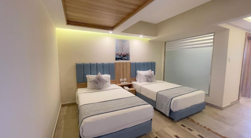 Хотелът разполага с общо 547 стаи, разпределени в една основна чсграда и обособени триетажни корпуса, от които 370 Standard rooms (33м2), 133 Superior rooms (33 m2) с изглед към градина, басейн или море, 26 Standard Family rooms (65 m2),(две спални, 1 баня) с изглед към градина, басейн, 18 Superior Family rooms (80 м2) (две спални, 1 баня) с изглед към море, басейн или градина, 100 Connected Rooms. Всички стаи са оборудвани с климатик, телевизор, телефон, баня с душ/вана, сешоар, минибар (всеки ден се зарежда с вода, безплатно), сейф (безплатно), балкон. Почистване на стаите и смяна на кърпи - всеки ден, смяна на спално бельо - 2 пъти седмично