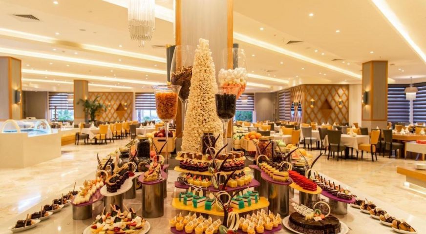 Гостите могат да се насладят на автентична турска, японска и бразилска кухня и морска храна в ресторантите Lalezar, Sakura, Salt и La Churrascaria. Ресторант Gusto предлага италиански ястия по а ла карт меню, а в Asian and Taj Mahal могат да се опитат азиатски и индийски специалитети. От хотелския комплекс се организират вечерни развлечения и има просторна зона за развлечения. Гостите могат да посетят и салона на открито X Lounge.
