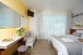 В стаите: Стаята разполага със сешоар, телевизор, телефон, вана или душ, индивидуален климатик, ламиниран паркет, балкон или тераса, мини-хладилник. Спалното бельо се сменя два пъти седмично, кърпите се сменят ежедневно, стаята също се почиства ежедневно. Осигурени са сателитна телевизия и безплатен Wi-Fi. Сейфът в стаята е платен.