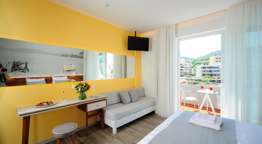 Разположение: В Ретимно, на 80 км от летище Ираклион, на 60 км от Ханя, на 250 м от плажа.