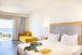 Комфортно Настаняване: Насладете се на комфорта и модерния дизайн на просторните стаи и бунгала, оборудвани с всички необходими удобства. Отпуснете се на частния балкон и се насладете на панорамна гледка към морето или градината.