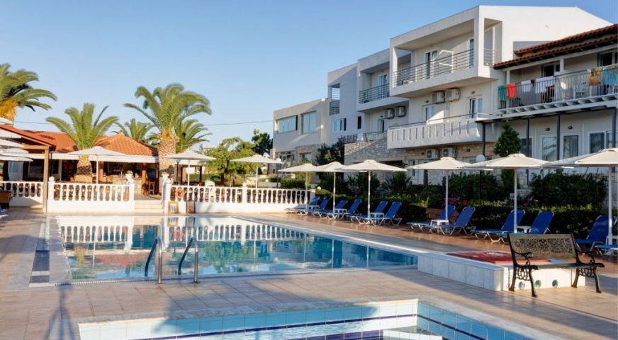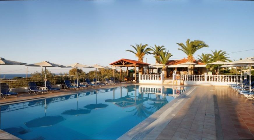 Хотелът е построен в традиционен гръцки стил и е разположен на хълм с красива гледка към морето. Подходящ за семейна почивка.