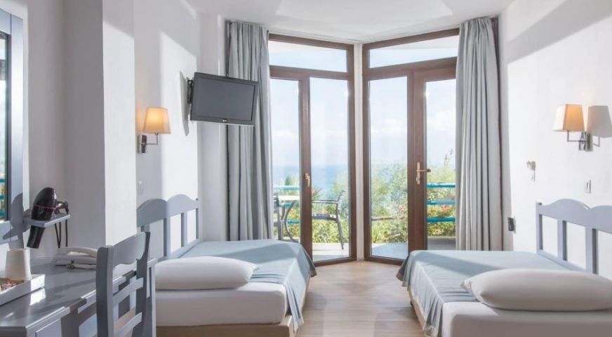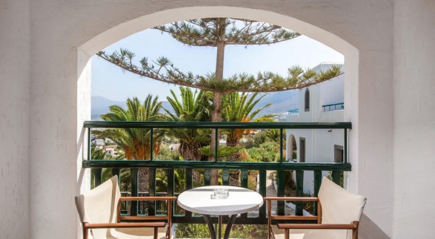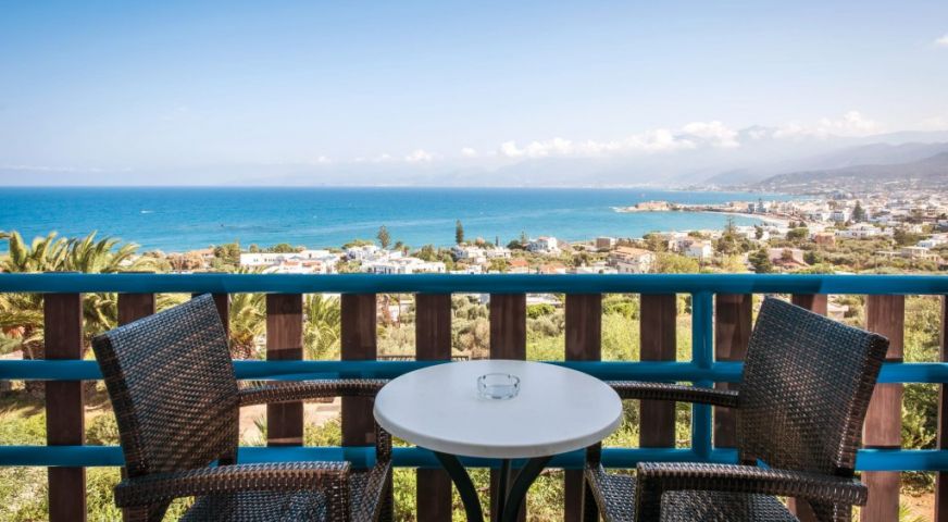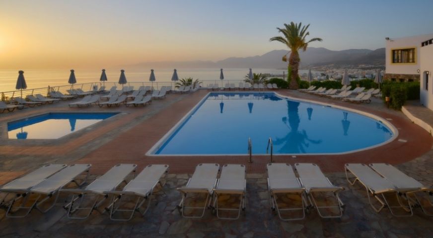 Хотелът с красива зелена площ и панорамна гледка към морето наподобява традиционно критско село. Разнообразна вечерна програма срещу допълнително заплащане. Препоръчваме го както за спокойна семейна почивка, така и за романтично бягство за двама. Гостите с ограничена подвижност и семействата с малки деца трябва да имат предвид, че хотелът е разположен на хълм и до плажа се стига от планината.