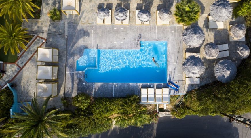Плаж: Обществен пясъчно-чакълест плаж (400 м от хотела), 3-та линия. Вход към морето: частично каменист. Автобус до плажа: безплатен (3 пъти на ден). На плажа чадъри, шезлонги: срещу заплащане. Кърпи на плажа не се предлагат. До басейна чадъри, шезлонги: безплатни.