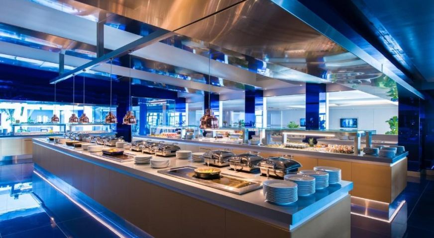 На територията на хотела: Хотелът разполага с фризьорски салон, четири ресторанта (основен, гръцки, италианска тратория и ресторант на плажа), три бара (на плажа, лоби коктейл бар и спортен караоке бар), четири открити басейна, закрит отопляем басейн, пералня, библиотека, телевизионна зала на втория етаж на основната сграда и на плажа, безплатен Wi-Fi, магазин за бижута, мини-кино, минимаркет, бутик и изложба и продажба на картини, пет конферентни зали за 500 души и нов SPA комплекс Olive SPA.