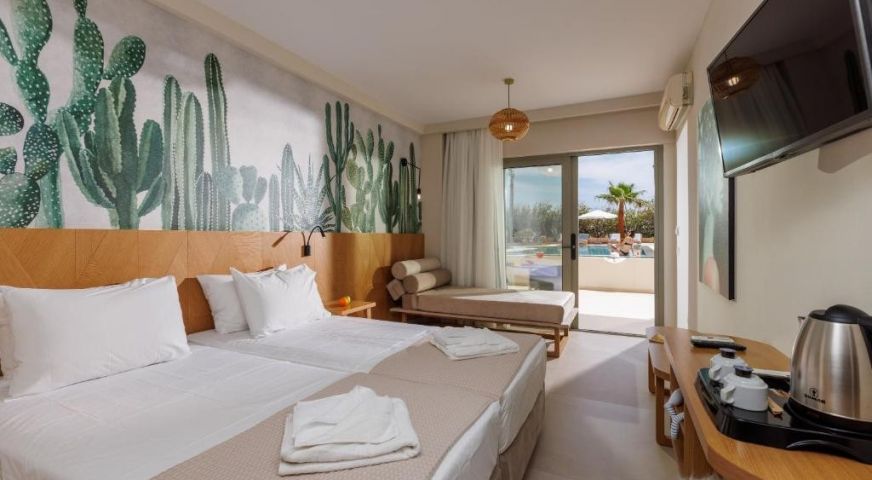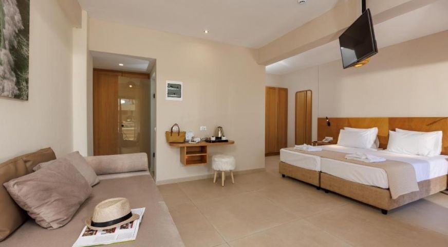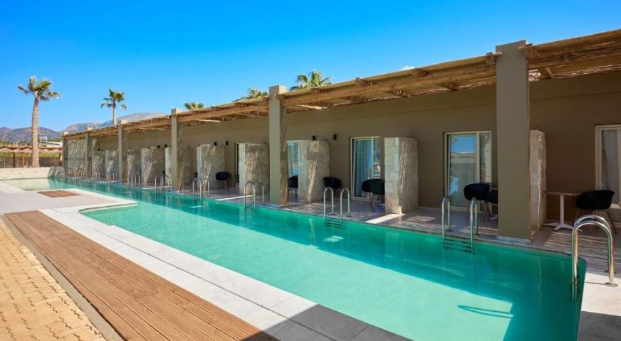 Хотелският комплекс се състои от основна сграда и отделни бунгала. Близостта до плажа, комфортните стаи, професионалното обслужване и приятелската атмосфера няма да оставят гостите безразлични. Добър избор за семейна почивка, а местоположението на хотела в село Малия с много кафенета и дискотеки несъмнено ще зарадва любителите на активните забавления.