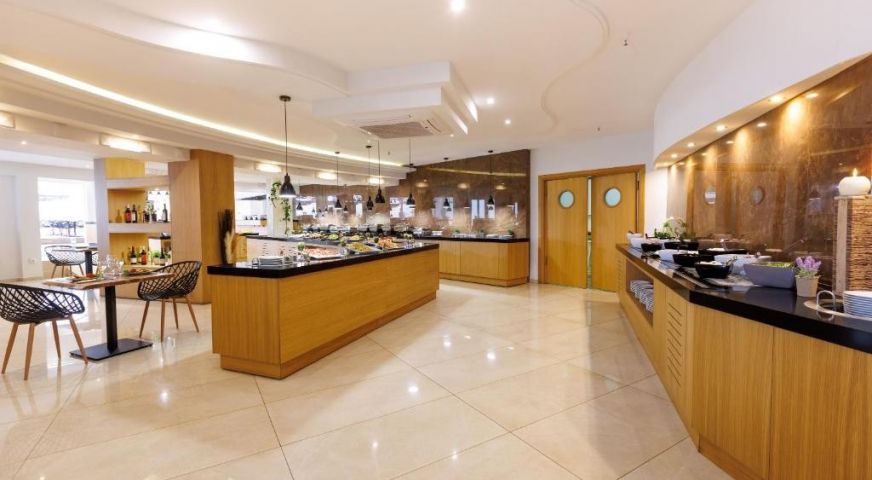 На територията на хотела: Хотелът разполага с телевизионна зала, градина, бюфет, подземен паркинг, коли под наем, обмяна на валута, открит плувен басейн, ресторант с гръцка и международна кухня, бар и бар край басейна. Wi-Fi е наличен и в общите части срещу заплащане.