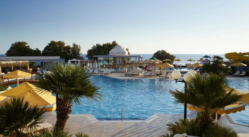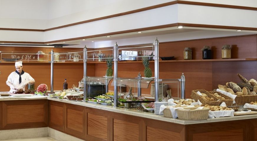 На територията на хотела: Хотелът разполага с основен ресторант, три ресторанта а ла карт, два бара и бар за палачинки край басейна. Wi-Fi е наличен във фоайето срещу заплащане. Гостите могат да ползват и обмяна на валута, паркинг, магазини и конферентна зала. Хотелът разполага с два открити басейна с морска вода, водна пързалка, лекарски услуги (срещу заплащане), пералня (срещу заплащане), велосипеди под наем (срещу заплащане).