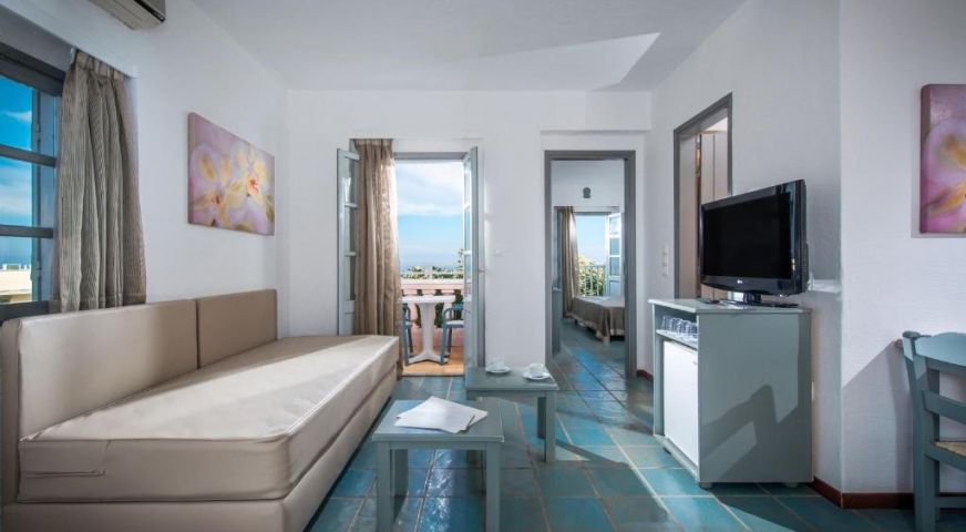 В стаите: Стаята разполага с безплатен Wi-Fi, балкон или тераса, сателитна телевизия и CD/DVD плейър. В апартамента са осигурени чехли и халат, както и сейф срещу допълнително заплащане. Стаята се почиства ежедневно, кърпите и спалното бельо се сменят два пъти седмично. Климатикът е индивидуален, подът е с теракота или ламинат, има мини хладилник. За ваше удобство стаята разполага още със сешоар, телефон.
