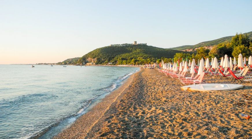 Отпътуване от София в 6.00 ч. от автогара „Сердика“, 6.30 ч. от Студена - бензиностанция "Shell/Mc Donald's", Дупница - 7.00 ч., Благоевград - 7.30 ч., Сандански - 8.30 ч. по маршрут ГКПП Кулата - Олимпийска ривиера. Пристигане по обяд. Настаняване. Свободно време за плаж. Нощувка.