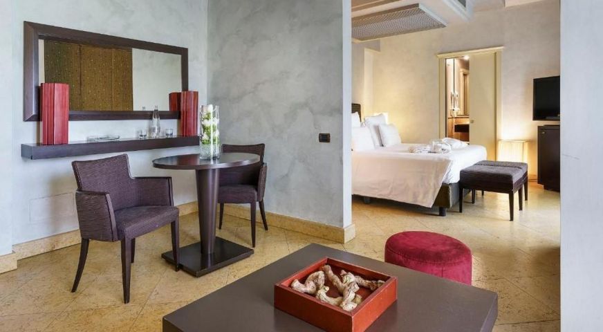 104 луксозни стаи и апартаменти, истински бижута, всяка от които е с различна, с божествени бани с мозайка и камъни. Използвани са най-модерни съвременни материали за постигане на максимален 5* комфорт и лукс. От просторните тераси се откриват евероятни гледки към планината Етна, морето или чудесната градина на хотела за идеална почивка.
