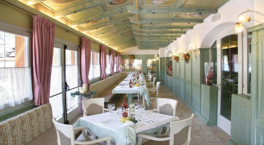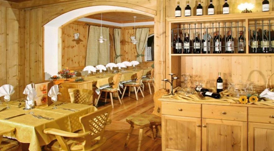 Основният ресторант предлага богата закуска на блок маса и вечеря с избор от меню. Предлага се както интернационална, така и типична тиролска кухня. Хотелът разполага и с уютен бар с камина за релакс след ден на пистите.