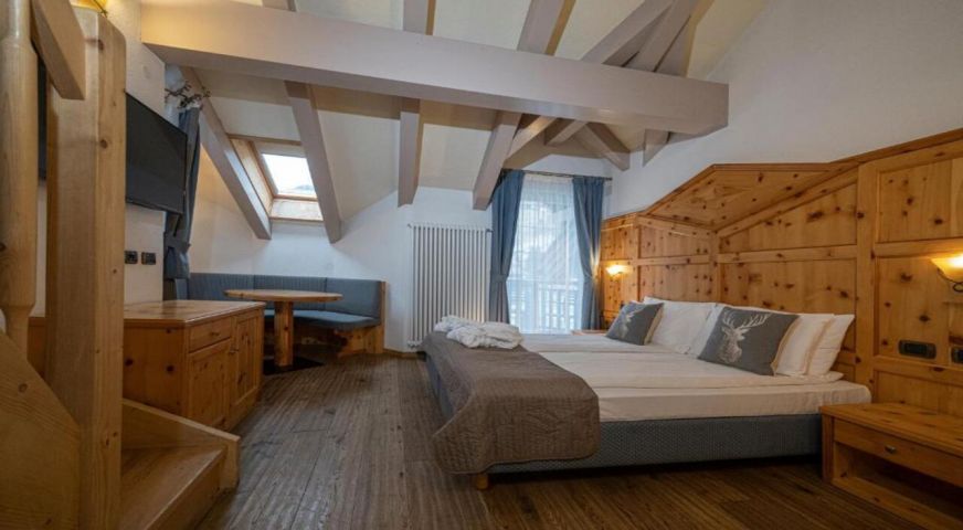 Hotel Gran Chalet Soreghes се намира в централната част на Кампитело ди Фаса, в сърцето на Доломитите, само на около 300 м от кабинковия лифт Col Rodella и с лесен достъп до ски зоната Sella Ronda.