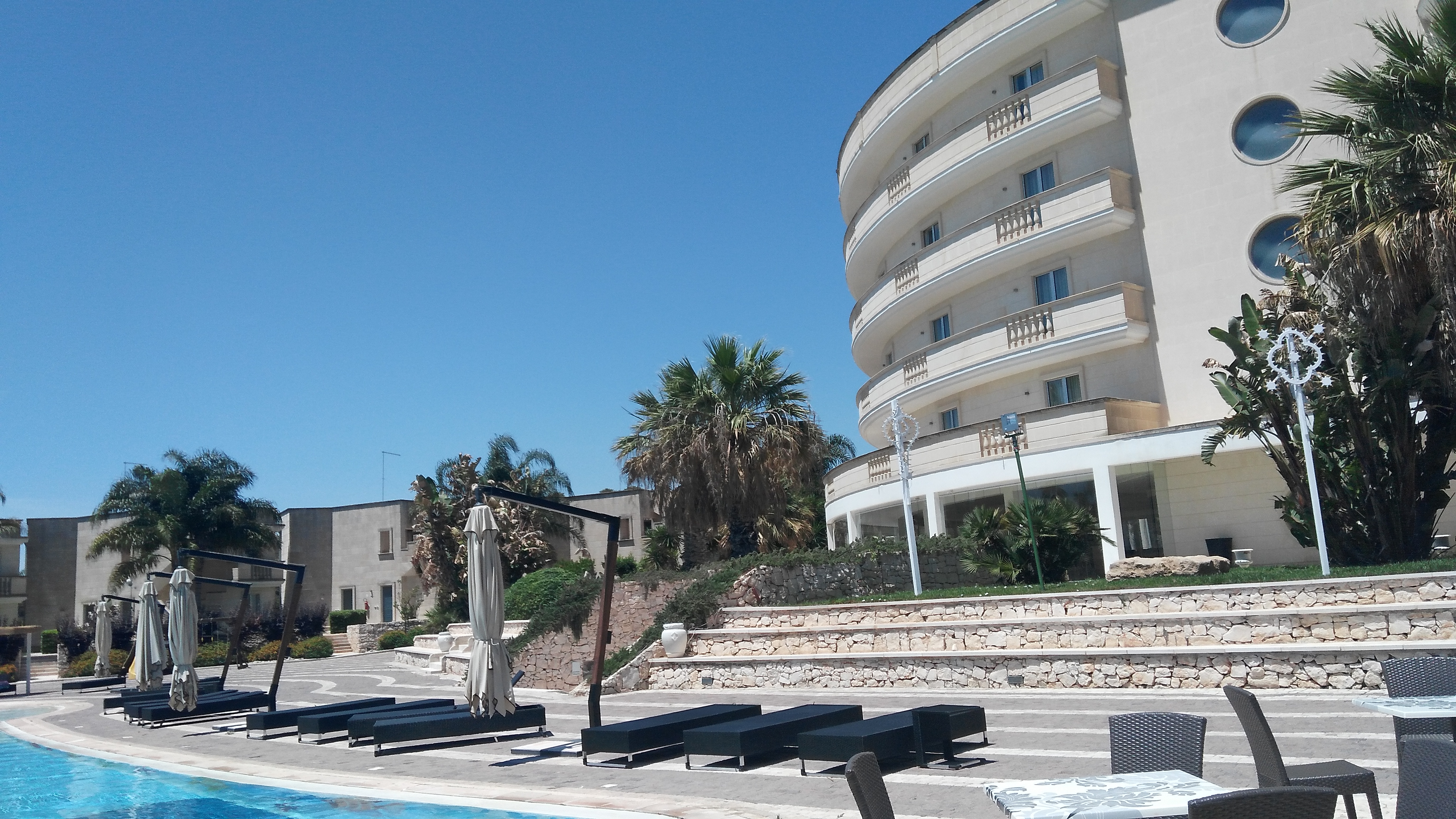 Хотел "Grand Hotel dei Cavalieri" 4* е разположен в западната част на тока на италианския ботуш, в курортното селище Кампомарино ди Маруджо – един от известните морски курорти в района на Таранто, на около 15 км от град Мандурия, познат с изключителното си вино "Примитиво ди Мандурия" и на около 40 км от центъра на историческия град Таранто. Летището в Бари отстои на около 150 км. Местоположението му е много благоприятно за опознаване на някои от най-атрактивните забележителности в регион Пулия. В близост до хотела има спирка на автобус до Таранто (цена: около 3 EUR в посока). От центъра на Кампомарино ди Маруджо могат да се хванат автобуси до Мандурия и Маруджо. В рамките на 1,8 км от хотела има ресторанти, пицарии, кафенета, барове, супермаркет, магазини, фризьор.