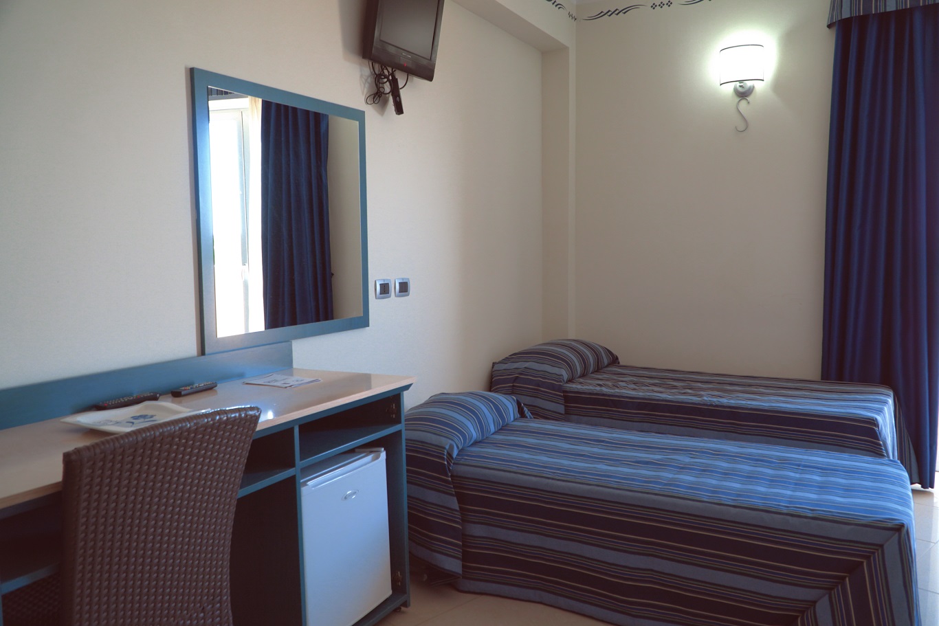 Всички стаи са модерно обзаведени и имат телевизор, минибар, централна климатизация с индивидуално регулиране, сейф, баня с душ, сешоар, безплатен Wi-Fi интернет, теракотен под. Предлагат се стаи за трудноподвижни туристи, които се предоставят след предварителна заявка и потвърждение от страна на хотела!
