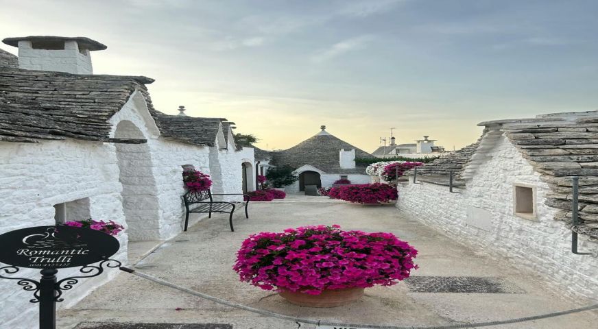 Първата спирка е Алберобело - визитната картичка на Пулия и истинска приказка, пренесена в реалността. Градът очарова с уникалните си трули - малки бели къщички с коносовидни каменни покриви, изградени без спойка - архитектурна хитрост от Средновековието, възникнала като своеобразна „данъчна измама“, позволяваща сградите да бъдат бързо разрушавани при нужда. Днес трулите са под закрилата на ЮНЕСКО и превръщат града в културен и архитектурен феномен.