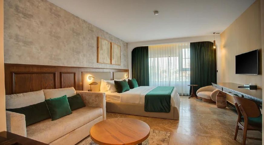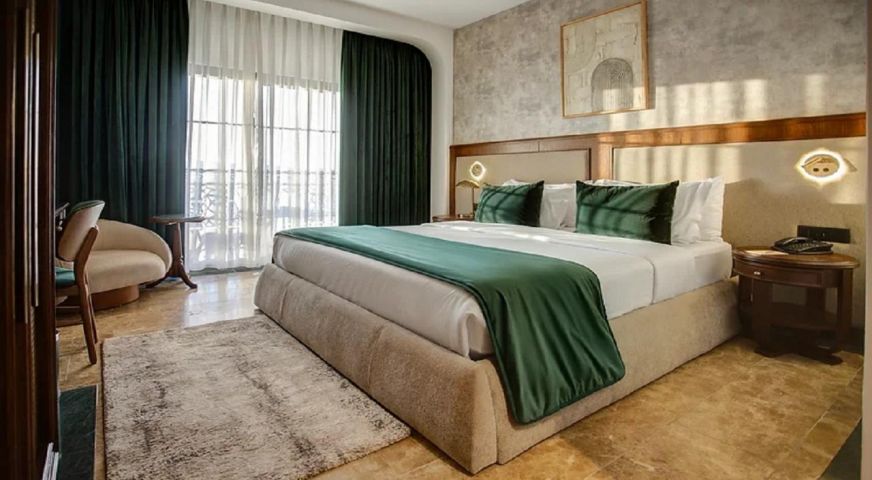 Оборудване: климатик, минибар (снабден), безплатна бутилирана вода, 42″ смарт ТВ, електрическа кана, бюро, сейф, телефон, вана/душ, сешоар, халати и чехли ;