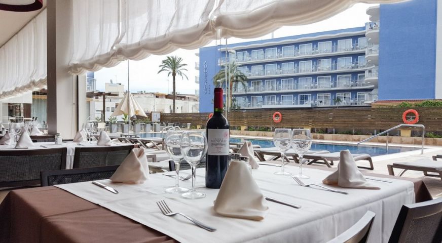 На територията на хотела: Основен бюфет-ресторант с богат асортимент от традиционна средиземноморска кухня, приготвена с висококачествени продукти. Голям открит басейн, джакузи, детски басейн, солариум и бар.