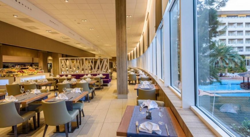 На територията на хотела: ресторанти които предлагат всякакви видове храни-шветски маси, а ла карт и снак бар, основен бар. Няколко басейна-2 големи вътрешни басейна-единият е минерален.1 голям открит за деца и възрастни. Фитнес-безплатен и тенис кортове. Хранителен магазин, Сауна и спа с различни пруцедури-срещу доплащане. Игрални площадки и анимации за децата и възрастните. (Вечерни програми и отделно анимационни програми за деца).