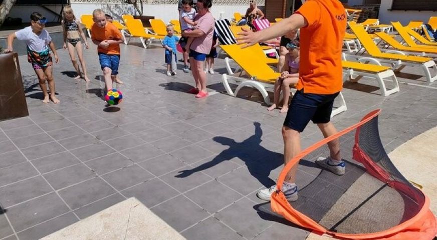 На територията: няколко басейна (децки и за възрастни) от които 1/2 се ползват за аква партитата. Голяма площадка за децата. Детски клуб с аниматури да занимават децата. Основен ресторант който сервира тематични вечери и всякакви други, спициални менюта за децата, включително и без глутенови за хора с по специални нужди.Бар. Фитнес. Климатици, сешоари, телевизия и тераси в повечето стаи.