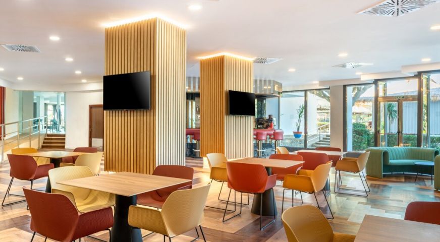 На територията на хотела: 3 големи външни басейна, един от които е климатизиран, 3000 кв.м. площ спортни площадки и игрища- тенис, футбол, волейбол, фитнес зала. Бюфет-ресторант, сънсет бар и снек бар до басейна.