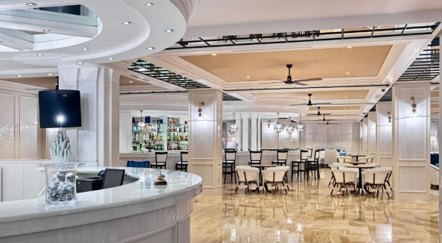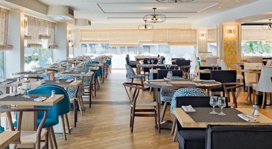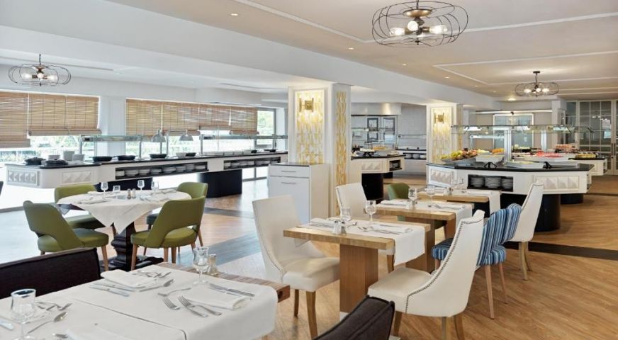На територията: Основен ресторант с шоу готвене. Открити басейни(основен открит и един голям на слънчевата тераса с гледка към морето). Няколко барове. Вечерни програми -DJ и диско партита. Фитнес център. Стаите разполагат с кърпи, телевизия, сешоар, интернет-безплатен и тераса с гледка към морето.