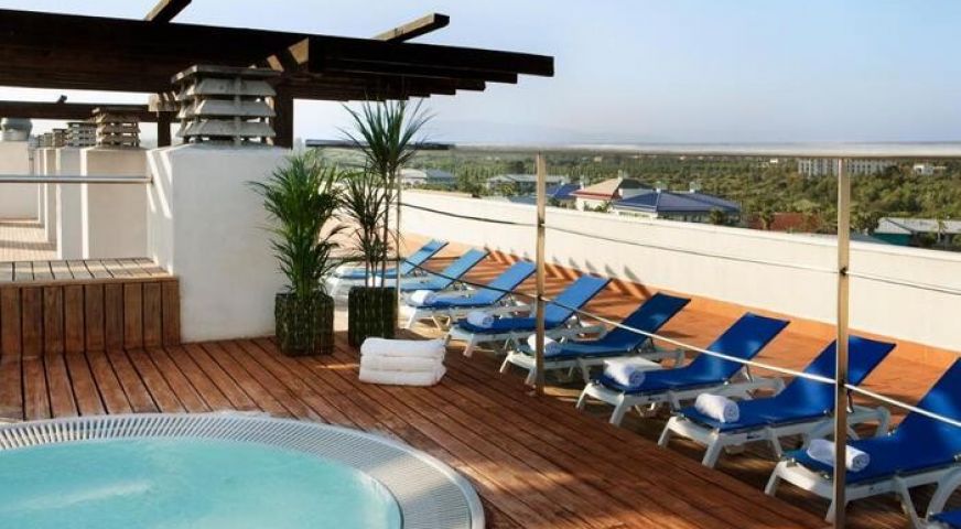 Хотел H10 Salauris Palace разполага с открит басейн тип лагуна с водопад и хидромасажна вана, закрит отопляем басейн и фитнес зала с турска баня и сауна. Всички стаи имат собствен балкон.