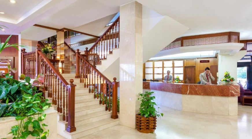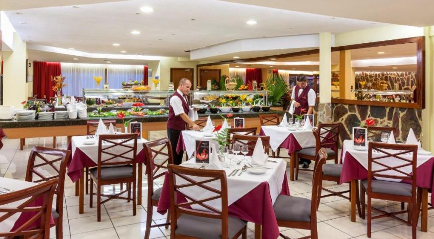 Хотелът разполага с основен ресторант (дрескод за мъже - дълги панталони), бар до басейна, басейн с размери 15 на 20 метра.