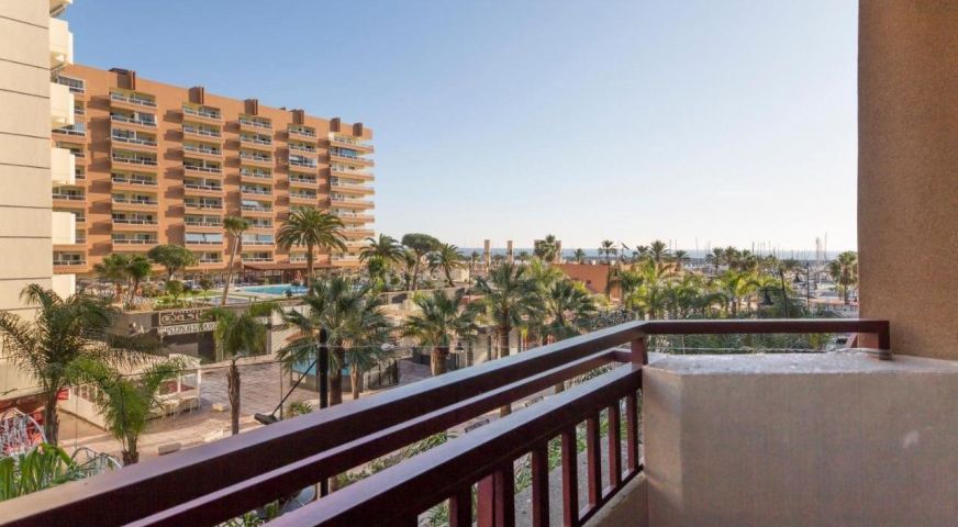 Хотел Las Palmeras се намира в центъра на курорта Фуенхирола, на Коста дел Сол, Испания. Разположен е на първа линия до крайбрежната алея, само на няколко минути пеша от плажа и в близост до магазини, ресторанти, барове и туристически атракции. Железопътната гара и автобусната спирка са на кратко разстояние, което осигурява лесен достъп до останалите части на региона.