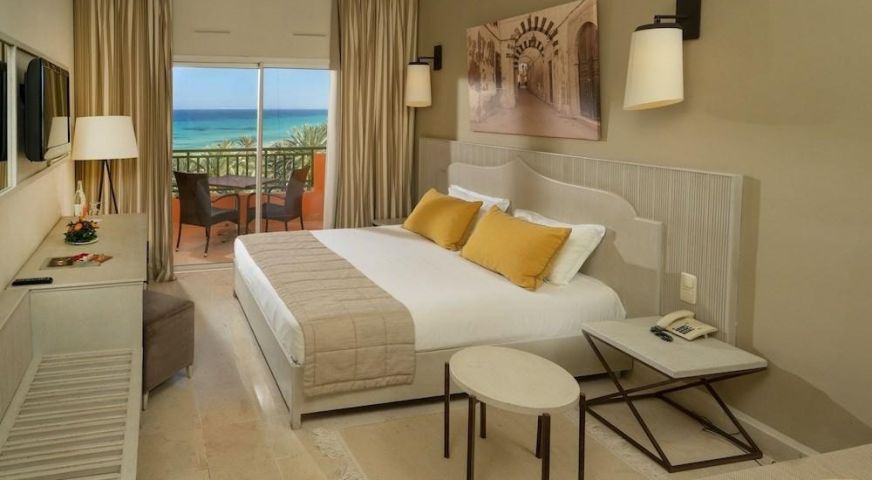 В стаите: Хотелът се състои хотелска част от 7 четириетажни блока и комплекс от бунгала. Основнага сграда е с асансьор. Разполага с 454 стаи: Standard garden room (25-32 кв.), Standard room side sea view (25-32 кв.м), Family Room (27-42 кв.м) и Family Superior (45-70 кв.м). Всички стаи са оборудвани с климатик, телевизор, сейф, сешоар, Wi-Fi в стаите в основната сграда, минибар. Някои от стаи не разполагат с балкон.