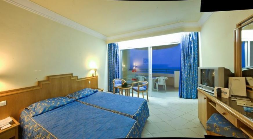 В стаите: Хотела разполага с общо 395 стаи, които са разположени в пететажна сграда с асансьор - Standard Room (25 кв.м), Sea View Room (25 кв.м), Suite Junior (52 кв.м с хол). Всички стаи са оборудвани с климатик, телевизор, баня с душ/вана, сешоар, мини бар (празен), балкон, сейф. Почистване на стаите - всеки ден.