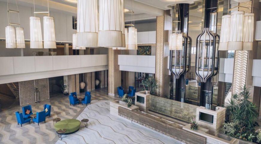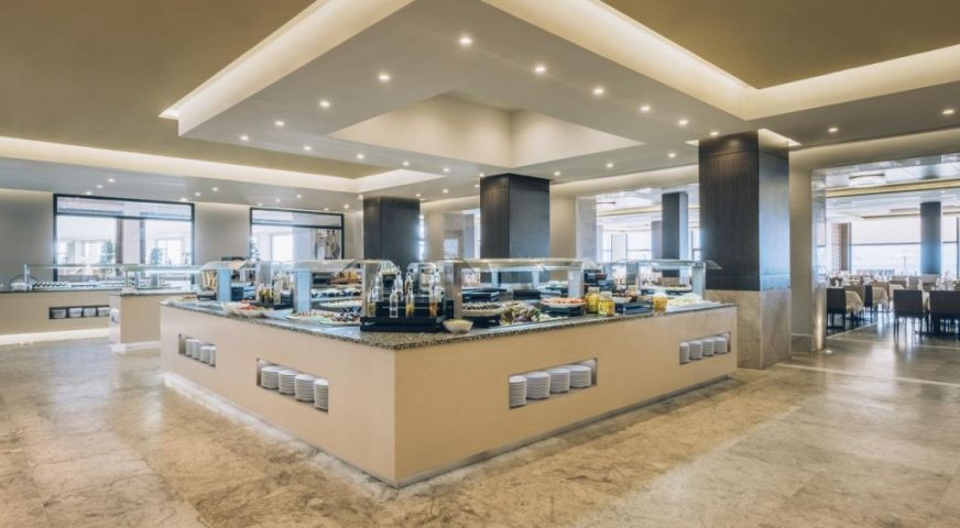 На територията: Основен ресторант, а ла карт ресторант (срещу заплащане, при предварителна резервация), снак бар до басейна, бар басейн, лоби бар, плажен бар, 2 открити басейна, един от които с водни пързалки, закрит отопляем басейн, 10 пързалки, 24 часова рецепция, 3 конферентни зали, СПА център, сувенирен магазин, обменно бюро.