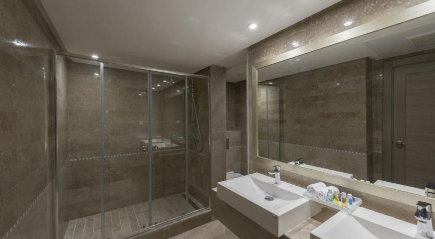 В стаите: Хотелът разполага с 520 модерно обзаведени стаи, разположени в отделни сгради с асаньори: Superior Garden View (26 кв.м), Superior Room Sea View (26 кв.м), Family Room (32 кв.м), Junior Suite Prestige (36 кв.м, представлява две двойни стаи с междинна врата), Suite Senior Prestige (52 кв.м, представлява две стаи разделени от арка). Всички стаи са оборудвани с климатик, телевизор, баня с душ/вана, сешоар, минибар (бутилирана вода, зарежда се ежедневно), сет за чай/кафе, сейф, Wi-Fi, балкон или тераса, тоалетни принадлежности, ютия (при запитане). Почистване на стаите - всеки ден.