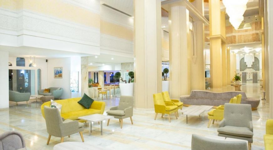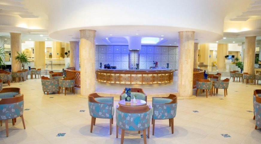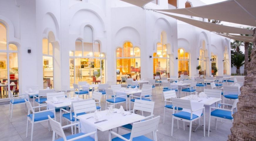 На територията на хотела: Основен ресторант, а ла карт ресторант (срещу заплащане, едно безплатно посещение на престой при предварителна резервация), лоби бар, бар басейн, бар до сцената за анимация, плажен снак бар, американски бар (срещу заплащане), мавританско кафене (срещу заплащане), външен басейн, открит басейн с морска вода, вътрешен басейн, анимация, 2 тенис корта, мини голф, 24 часова рецепция, конферентна зала и 4 зали за срещи, стая за багаж, сувенирен магазин, обменно бюро.