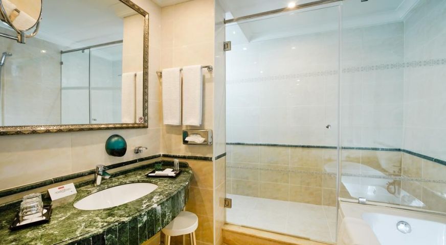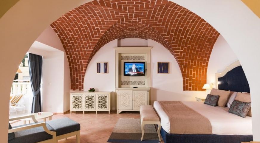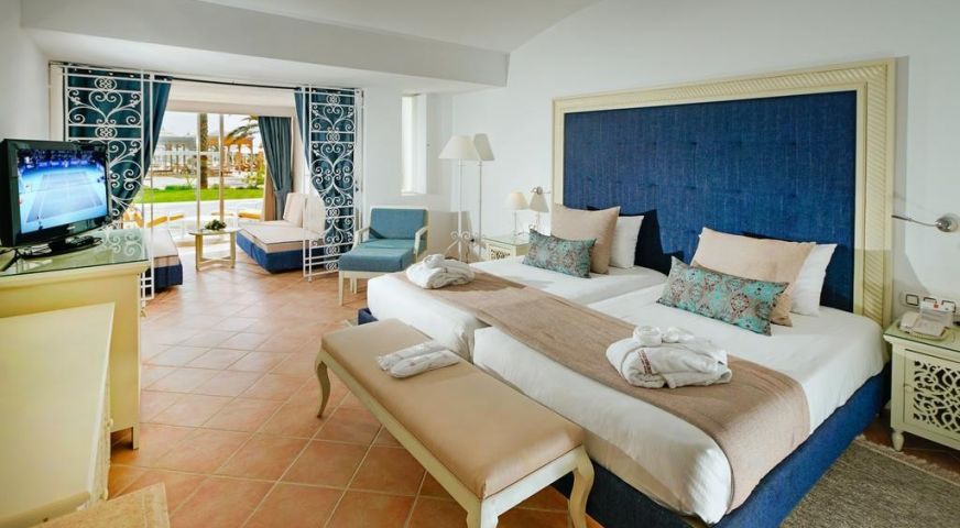 В стаите: Хотелът разполага с 371 стаи в 4-етажна основна сграда с асансьор и бунгала. Всички стаи са оборудвани с балкон или тераса, сешоар, тоалетни принадлежности, климатик, телевизор, мини бар (празен), сет за чай, сейф, Wi-Fi, баня с душ/вана, сешоар, халати за баня. Стаите се почистват ежедневно.