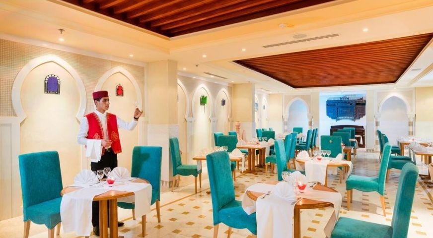 На територията на хотела: Основен ресторант Marhaba, а ла карт ресторант Bella Vita (платен, 1 безплатнo посещениe за престой при предварителна резервация), а ла карт ресторант Carthage с тунизийска кухня (платен, 1 безплатнo посещениe за престой при предварителна резервация), а ла карт ресторант Pecheur (платен, 1 безплатнo посещениe за престой при предварителна резервация), плажен ресторант (срещу заплащане), лоби бар с тераса, бар в басейна, плажен бар, лаундж бар Les Orangers, външен басейн с детска секция, вътрешен басейн, външен басейн с морска вода, 24 часова рецепция, Таласо център, сувенирен магазин, обмяна на валута, анимация, музика на живо.