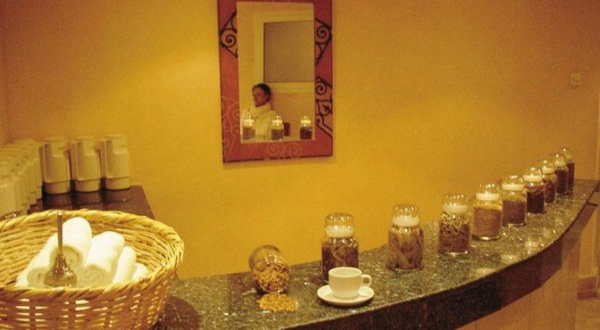На територията на хотела: Основен ресторант Thusdrus, 2 а ла карт ресторанта (едно безплатно посещение на престой, след предварителна резервация), лоби бар, бар басейн, мавританско кафене, 2 открити басейна, закрит басейн, 5 водни пързалки за деца и възратсни, Wi-Fi в лобито и лоби бара, сувенирен магазин, обмяна на валута, анимация.