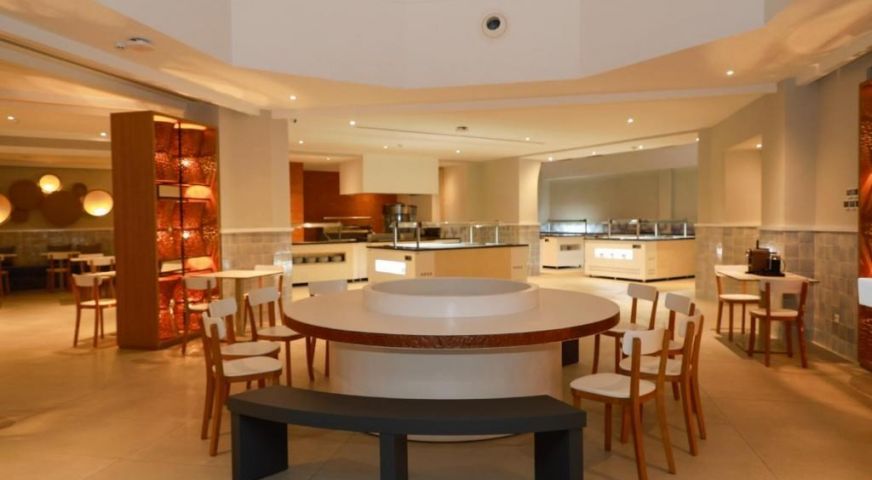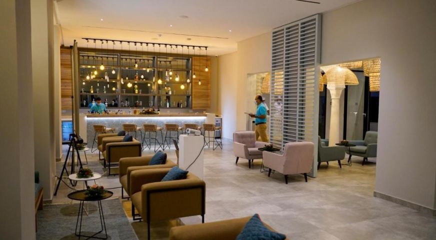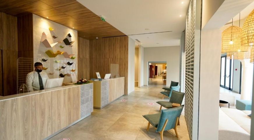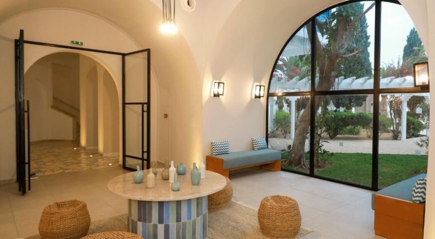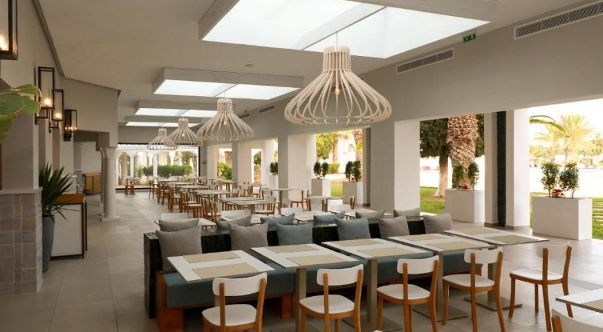 На територията на хотела: Основен ресторант Olivio, а ла карт ресторант (тунизийска кухня, едно безплатно посещение, с предварителна резервация), снек ресторант на плажа Alibiza, основен бар 360°, мавританско кафене El Fell (срещу заплащане), 2 открити басейна, СПА център, 6 тенис корта, конферентна зала, паркинг, 24 часова рецепция, обмяна на валута, анимация.
