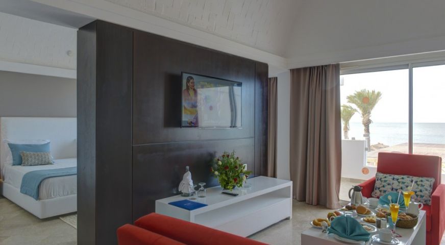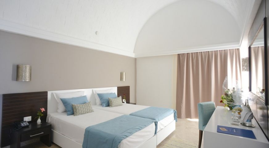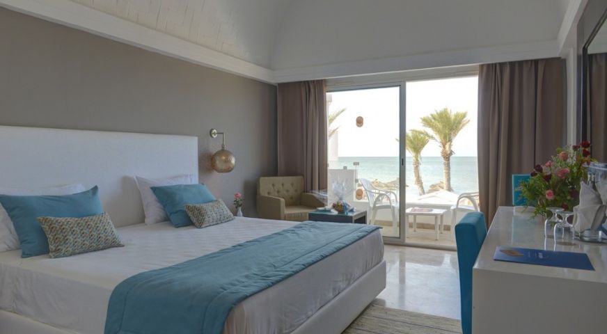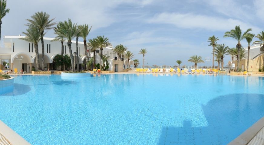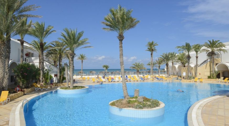 Разположение: Хотелът е разположен на 27 км от международното летище в Джерба и 19 км от Хумт Сук, намира се на първа линия в района на Тагерме, на 70 м от красивия плаж Сиди Марез и на 500 м от плаж Меридиана, на 6 км от Мидун. Последна реновация през 2017 година.