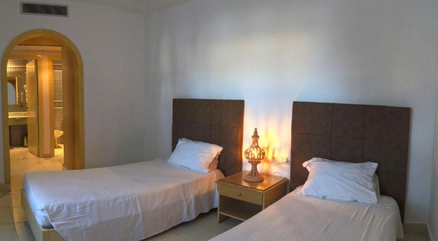 Разположение: Хотелът се намира на първа линия, до красивия плаж с бял пясък Сиди Марез, на 5 км от Мидун, на 18 км от Хумт Сук и на 27 км от летището. Последната реновация е от 2019 год.