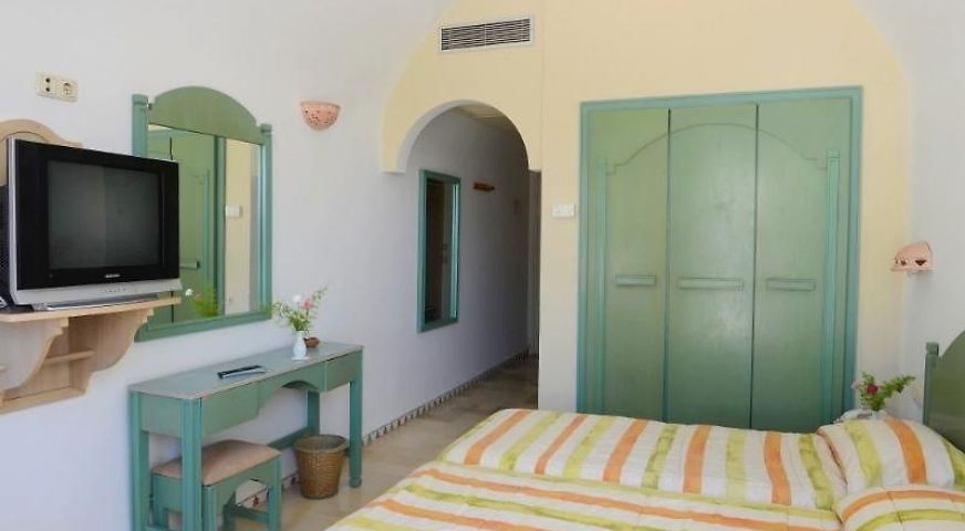 Разположение: Хотела се намира на 5 км от центъра на Мидун, на 2 км от Голф клуб Джерба, на 1 км от Гранд Боулинг Джерба и на 31 км от летището. Намира се на 250 метра от плажа. Хотелът е с приветлив персонал и интернет навсякъде. Климатиците се включват след 15 юни, но може и по-рано, ако хотелът е пълен. Напълно реновиран през 2006 г.