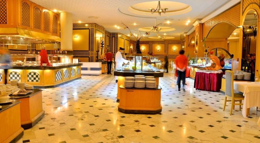 На територията на хотела: Основен ресторант Guellela, 3 ресторанта a la carte (Тунизийска, Средиземноморска, Италианска кухня с доплащане. Гостите могат да вечерят веднъж безплатно по време на престоя си във всеки ресторант. Необходима е предварителна резервация.), плажен ресторант Maya (срещу заплащане), 5 бара- лоби бар, пиано бар, бар на плажа (01.05 -31.10, не са включени алкохолни напитки), бар на басейна Barbecue, мавританско кафене, Снек бар (през лятото), външен басейн, вътрешен басейн с джакузи, СПА център, шоу програми, жива музика, анимация.